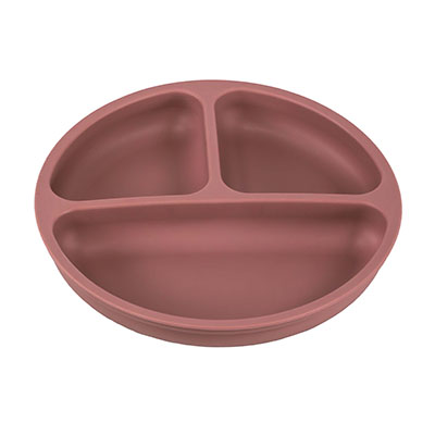 Three 1-½" deep compartments keep food separated. Two smaller sections hold 6.75 oz. The larger one has a 12.6 oz. capacity. High compartment walls may be used to push food onto forks and spoons. Stackable with clear plastic covers for easier transporting and storing of food. Diameter measures 8¼" (20 cm). Dishwasher and microwave safe