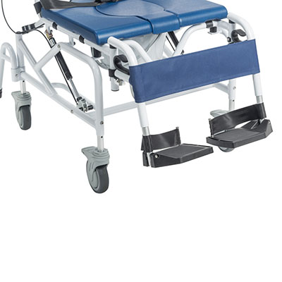 For bathrooms or shower rooms where there are threshold issues, look no further than the Baltic Transporter Shower Commode Chair for a smooth transition between elevations. 5" front casters and 14" rear wheels make transporting and navigating over thresholds smooth and comfortable for the user. An open base design allows for the Baltic to be wheeled over a standard toilet, or used as a commode chair when used with the included commode pail. Overall Height: 43". Overall Width: 30". Distance from Floor to Seat: 17.5"-20". Seat Depth: 15.75". Backrest Height: 20". Internal Width: 22". Casters: 5" Front, 14" Rear. Includes one pail with lid and safety belt. Weight Capacity of 330 lbs.