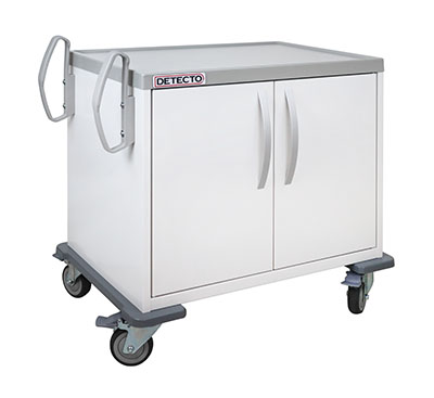 Detecto's Apex Digital Clinical Scale features inline mechanical height rods and an extra-wide, flat platform measuring 17 in W x 17 in D x 2.75 in H. The included handrail allows patients to maintain balance as they get weighed. The Apex scale features 600 lb x 0.1 lb / 270 kg x 0.05 kg capacity, 0.75-inch-high clinical-blue LCD weight readouts, units locking into kilograms or pounds, BMI calculation, AC adapter included, 1 RS232 serial port and 1 micro USB-B port, HL7 IEEE 11073 compliance, Wi-Fi/Bluetooth and Welch Allyn connectivity (available on some models), dual wheels for transport, sturdy column construction, and integral bubble level. The Apex is NTEP certified for weighing accuracy with patient dosing.