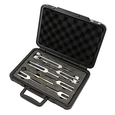 The Baseline Tuning Fork 6-piece set evaluates hearing and vibratory sensation with a set of 6 tuning forks to choose from. Included are the 128, 256, 512, 1024, 2048, and 4096 cps tuning forks which are conveniently found inside a carrying case.