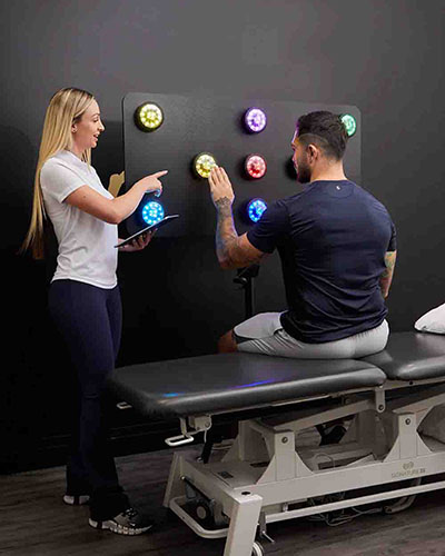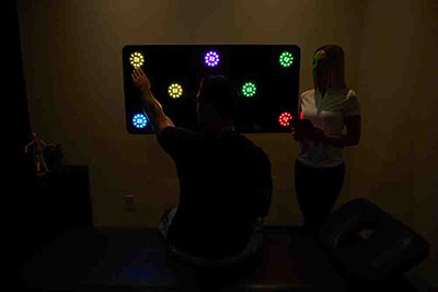 The FitLight Vision board is mobile, lightweight in design and easy to use. It's a versatile design with an adjustable tripod for easy transport and set-up. The board's standard size is 4' x 2' and has placements for eight (8) FitLights. Lights are attached with durable magnets - a great addition to any rehabilitation or sports vision practice.