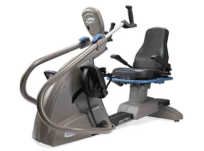 In 1993, NuStep re-invented fitness and introduced the world to the first total body recumbent trainer that benefitted users of virtually any fitness level or functional ability. Nearly 20 years later, they've done it again. NuStep's line of Recumbent Cross Trainers reimagines cross training for far more than just general fitness purposes. The unit is ideal for PT sessions, cardiopulmonary rehab, improving cardiovascular function and sports medicine. That's why NuStep units are used in healthcare facilities, wellness centers, senior living residences and home gym studios around the world. By combining a natural sitting position with a smooth stepping motion, the NuStep works all major muscle groups from a comfortable seated position. Multifunctional, the T5XRW allows arms to be used alone, legs alone or both together. With the added benefit of resistance training, working out uses even more muscles and burns more calories. The T5XRW was designed with comfort and customization in mind. The seat is 22" wide to accommodate larger users, is foam padded, ergonomically designed, has contoured back support and can be adjusted forwards, back and recline 12 degrees. Below it is the water bottle holder and contact heart rate grips are found on either side. The arm handles are adjustable as well, capable of rotating as well as extending, while the rubber hand grips are soft and comfortable. Workouts are adjustable and customizable too. Quiet and frictionless, 15 different workload resistance settings are offered, powered by an all-belt drive. Stepping range can also be adjusted from 2"-8.5". The durable heavy-duty welded steel frame is powder coated while the zinc-plated components resist rust. The T5XRW offers 13 pre-programmed exercise programs and a variety of profiles for different levels of interval training. The console features an easy to read LCD color display from which users can change resistance, select a program and view current workout stats. You can even choose which of the 9 available languages you prefer. Among the data displayed is resistance level, total steps, duration of workout, lap counter and lap progress. Manager Mode allows authorized personnel to view and export product and workout data, change factory default settings and turn features on and off. The T5XRW has a weight capacity of 600 lbs. and is suitable for exercisers sized 4'6"-6'7". The T5XRW is self-powered and typically does not require an external power source. However, to ensure proper operation, the equipment should be plugged in. The supportive and stable foot pedals are cushioned and oversized to accommodate feet of various sizes. Pushing with the whole foot works the quadriceps and hamstring muscles. Pushing with only the balls of the feet targets just the calf muscles. The console will automatically turn off after three minutes of inactivity on the trainer. The sturdy metal construction of the Grab Ring provides additional support and stability for all users. It is now standard across all NuStep models, allowing users to safely get on and off with ease. The unit may be cleaned with any mild, non-toxic and non-abrasive cleaner. Along with this unit is a preinstalled Stability Essential Bundle. This bundle includes the Well Grips, Unilateral Leg Stabilizers, and the Hip / Torso Seat belt.