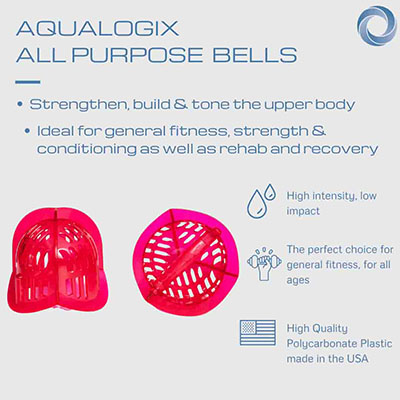 Aqualogix Medium Resistance "All Purpose" Bells: Ideal for those focused on general fitness. The Aqualogix Medium Resistance "All Purpose" Bells are a popular option for those focusing on general fitness. They provide slightly more resistance than the Low Resistance "High Speed" Bells and a good for those wanting more of an emphasis on cardio and core strength, however, are also good for fast tempo sets and HIIT style training.