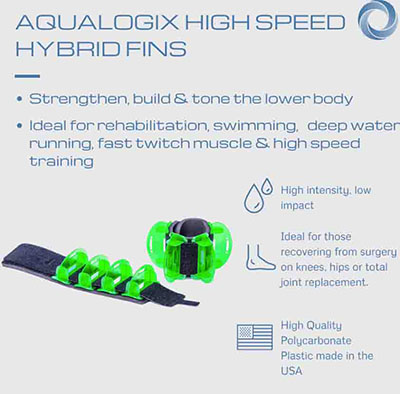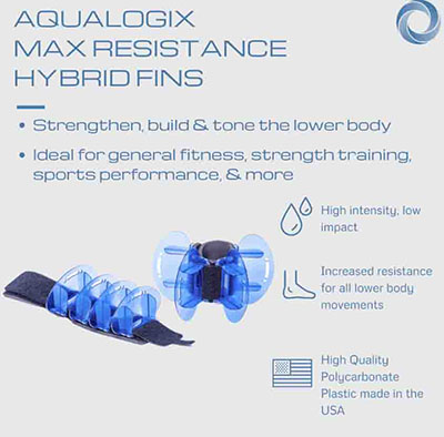 Aqualogix High Resistance Fins: Ideal for those focused on strength training. The Aqualogix High Resistance Fins provide a high level of resistance making them great for those focused on strength, power and endurance. Designed to provide resistance in all directions, they can be rotated to provide more focused resistance in any desired direction. Each strap has (4) 6" fins.