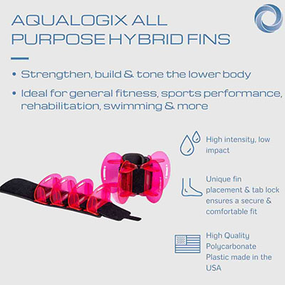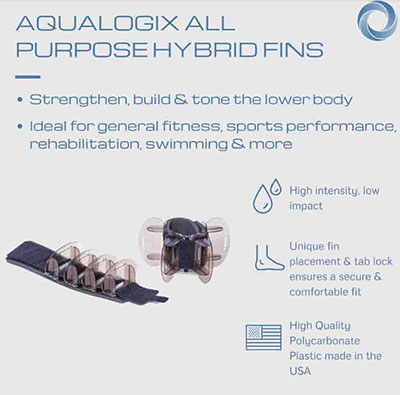 Aqualogix Medium Resistance "All-Purpose" Fins: Ideal for those focused on combining strength training and high-speed cardio/HIIT. The Medium Resistance "All Purpose" Hybrid Fin is the newest addition to our line of functional aquatic resistance equipment.?The All Purpose Fins provide a great balance of good resistance for knee hinge movements and also long lever hip articulation. You achieve results with high speed water exercises, dynamic neuro-muscular training, athletic performance training, rehabilitation and injury recovery pool training.