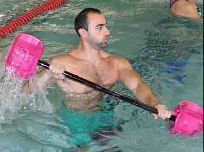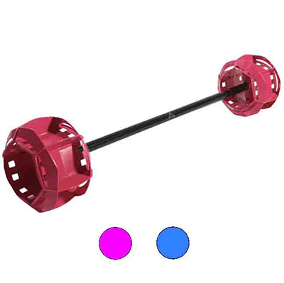 Aquastrength Barbell: Ideal for upper body, core strength and endurance. The Aquastrength Barbell (available in pink and blue) has one Aquastrength Bell attached at each end to provide multi-directional resistance in the water. It allows the user to perform a multitude of exercises that focus on dynamic flexibility, upper body, core strength, coordination, balance, rotary stability, power, agility and endurance. The barbell is only available in one level of resistance, but the user can simply adjust their grip to progress / regress exercise variations.