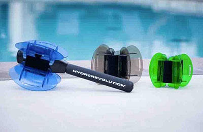 Hydro-Tone Hydro-Bells: The Original Relaunched. Hydro-Bells are a yellow hydrodynamic bell with three-dimensional configurations designed to enhance and take advantage of the total resistance field of water. Bells can be rotated 90 degrees to change the resistance from medium to maximum by changing the drag surface area. While they maybe not as maneuverable as some of our more compact bells, these sure do pack a punch for linear movements, strength training and muscle toning/development.
