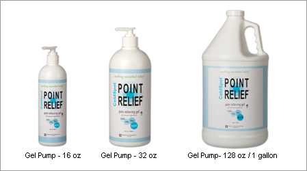 Point Relief® ColdSpot™ packaged in 16 oz, 32 oz, and 1 gallon pumps are designed for clinic use. The pump packaging allows for more control over the amount of product dispensed at a time.