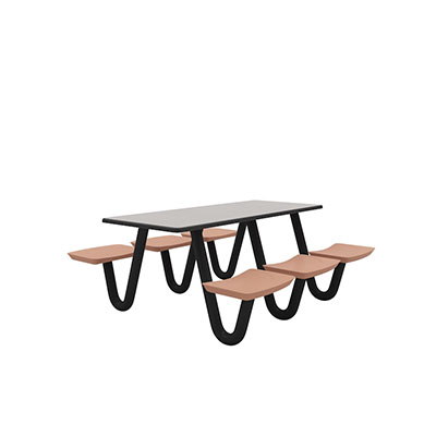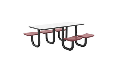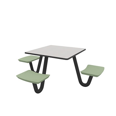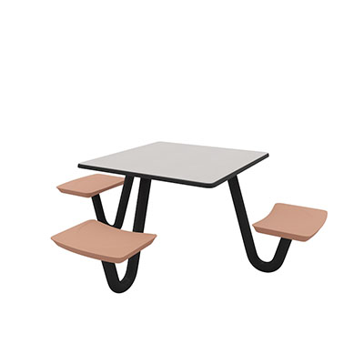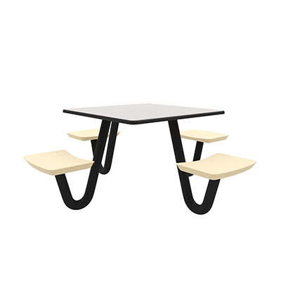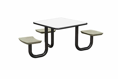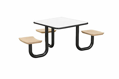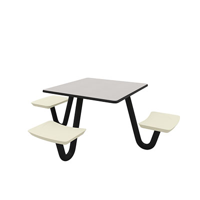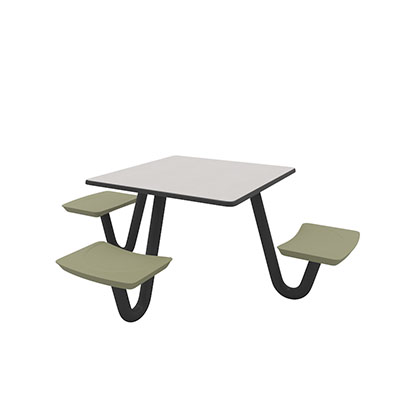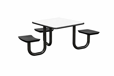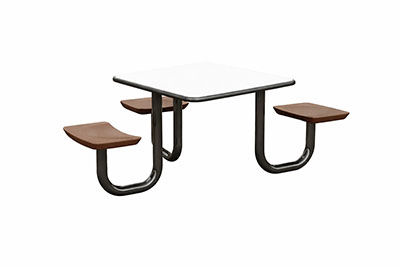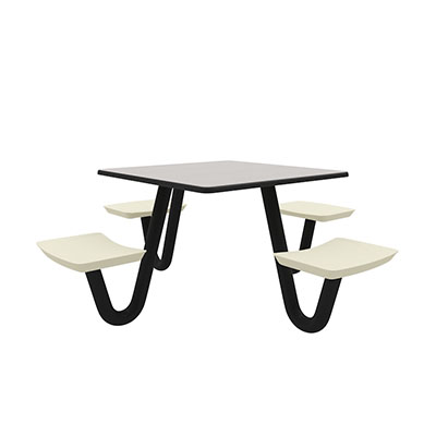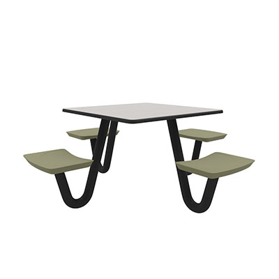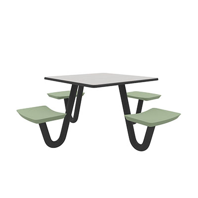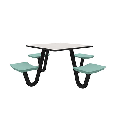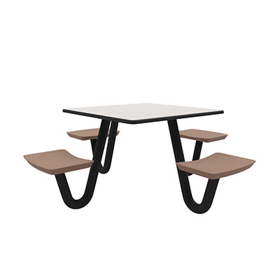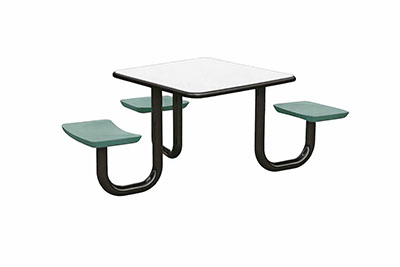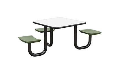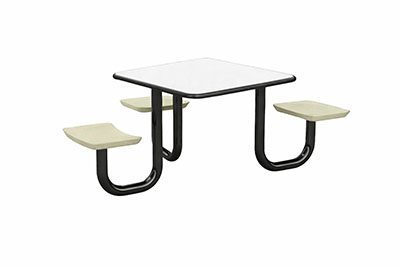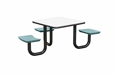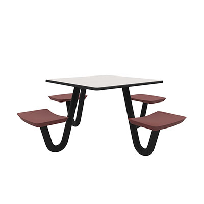 The Anchor Table is the perfect choice for any environment. Constructed of high impact "no break" polyethylene and designed with a rotationally molded design for increased strength, this durable product is perfect for any residential institution, school or university, detention center, public safety facility and more. The seat configurations range from 3 to 8 seats and are available in aqua, black, blue grey, brown, burgundy, gray, green, indigo, midnight blue, sand, slate blue and stone grey. The heavy-duty table is designed with a laminate top that is seamless one-piece design with extreme surface strength, high impact resistance, along with a rounded edge for additional safety and comfort. Attached to the legs are tamper-resistant screws for increased security and easy maintenance. The tables also feature a continuous seam welded frame structure that consists of 3" diameter 14-gauge powder coated steel with 11-gauge steel seat supports. ADA Compliant tables are manufactured with one less leg to meet building code requirements. Each table is proudly made in the USA! Floor bolting is recommended for added stability. This square table measures 42" by 42" and can seat up to 4 people.
