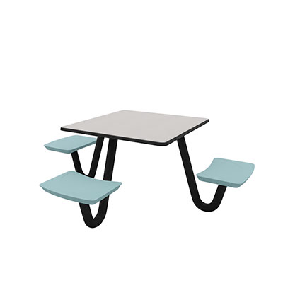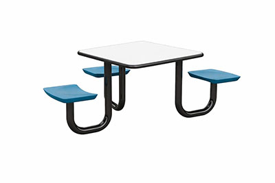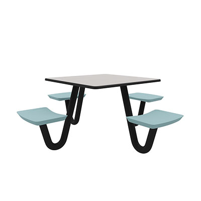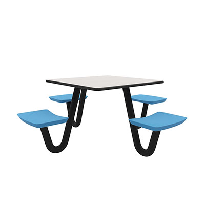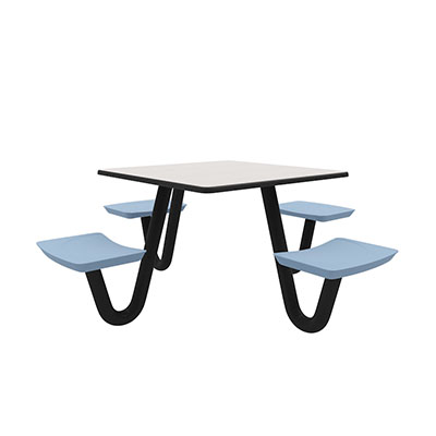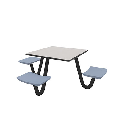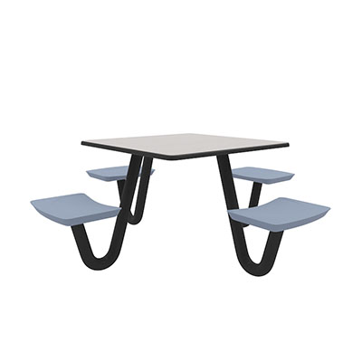The Anchor Table is the perfect choice for any environment. Constructed of high impact "no break" polyethylene and designed with a rotationally molded design for increased strength, this durable product is perfect for any residential institution, school or university, detention center, public safety facility and more. The seat configurations range from 3 to 8 seats and are available in blue grey. The heavy-duty table is designed with a laminate top that is seamless one-piece design with extreme surface strength, high impact resistance, along with a rounded edge for additional safety and comfort. Attached to the legs are tamper-resistant screws for increased security and easy maintenance. The tables also feature a continuous seam welded frame structure that consists of 3" diameter 14-gauge powder coated steel with 11-gauge steel seat supports. ADA Compliant tables are manufactured with one less leg to meet building code requirements. Each table is proudly made in the USA! Floor bolting is recommended for added stability. This square table measures 42" by 42" and can seat up to 4 people.