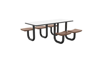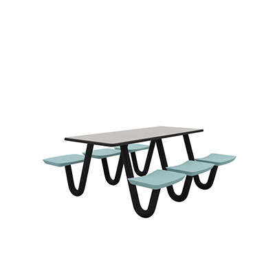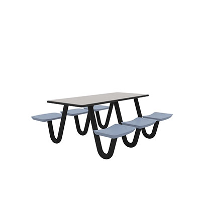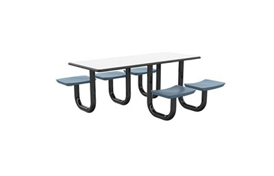 The Anchor Table is the perfect choice for any environment. Constructed of high impact "no break" polyethylene and designed with a rotationally molded design for increased strength, this durable product is perfect for any residential institution, school or university, detention center, public safety facility and more. The seat configurations range from 3 to 8 seats and are available in blue grey. The heavy-duty table is designed with a laminate top that is seamless one-piece design with extreme surface strength, high impact resistance, along with a rounded edge for additional safety and comfort. Attached to the legs are tamper-resistant screws for increased security and easy maintenance. The tables also feature a continuous seam welded frame structure that consists of 3" diameter 14-gauge powder coated steel with 11-gauge steel seat supports. ADA Compliant tables are manufactured with one less leg to meet building code requirements. Each table is proudly made in the USA! Floor bolting is recommended for added stability. This rectangular table measures 30" by 72" and can seat up to 6 people.