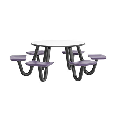 The Anchor Table is the perfect choice for any environment. Constructed of high impact "no break" polyethylene and designed with a rotationally molded design for increased strength, this durable product is perfect for any residential institution, school or university, detention center, public safety facility and more. The seat configurations range from 3 to 8 seats and are available in aqua, black, blue grey, brown, burgundy, gray, green, indigo, midnight blue, sand, slate blue and stone grey. The heavy-duty table is designed with a laminate top that is seamless one-piece design with extreme surface strength, high impact resistance, along with a rounded edge for additional safety and comfort. Attached to the legs are tamper-resistant screws for increased security and easy maintenance. The tables also feature a continuous seam welded frame structure that consists of 3" diameter 14-gauge powder coated steel with 11-gauge steel seat supports. ADA Compliant tables are manufactured with one less leg to meet building code requirements. Each table is proudly made in the USA! Floor bolting is recommended for added stability. This table is round with a 48" diameter and can seat up to 6 people.