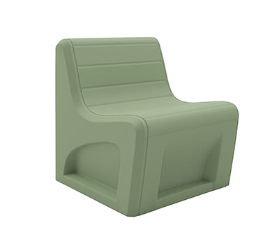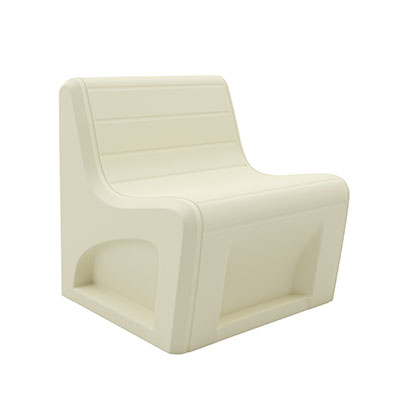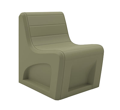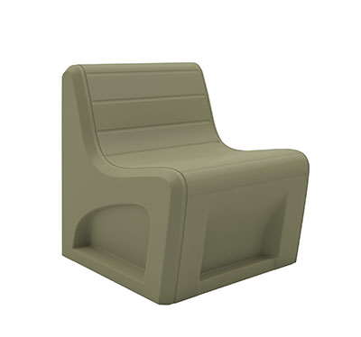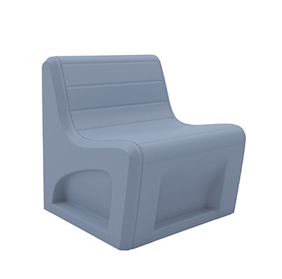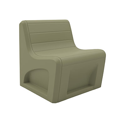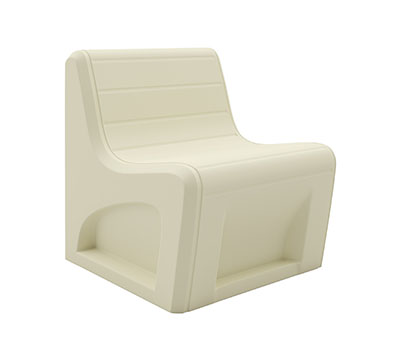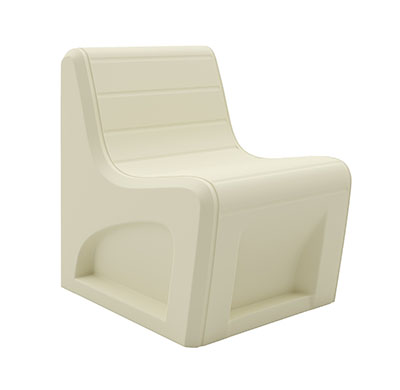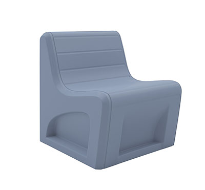 Versatile, spacious chair intended for lounging, with the ability to stand alone or be bolted together. The ergonomic design provides maximum comfort using rotational molding technology. Rotationally molded design for increased strength. Constructed of high impact "no break" polyethylene. No steel or wood components. Can be bolted together in place, or to the floor via concealed pilot holes. Sound dampening. 1500 lb. Static Load, ANSI/BIFMA X5.1-2011. Easy to clean, sanitize and maintain. Can be easily filled with sand through optional ballast door on site to weigh down. Secures with tamper resistant screws. Passes Flammability UL 94 HB. Tested to ISO 22196 showing a less than 99% reduction in bacteria. Flame Retardant (passes Cal 133). Test reports available upon request. Manufactured to ISO Quality Standards in the USA.