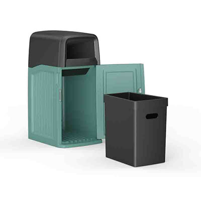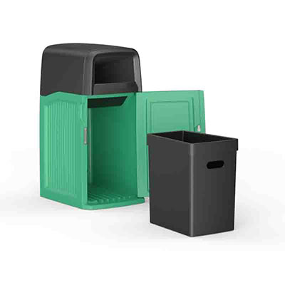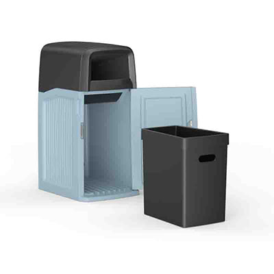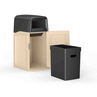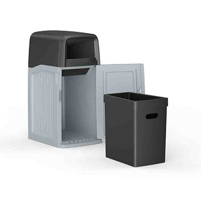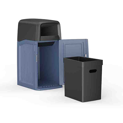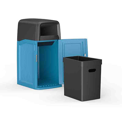 SafeBin is the ultimate solution for maintaining cleanliness and security. The tamper-resistant, lockable waste management system prevents access to trash liners and discarded content. It is rotationally molded for durability and constructed without metal hinges for added safety. 35-gallon capacity inner container can be used with or without trash liners. The slightly sloped bottom interior for easy cleaning and drainage. Efficient design provides staff with a safe, "no mess" solution for cleaning and disposing waste. Standard trash liners can now safely replace perforated liners to prevent liquids and other trash from seeping through. Highly durable with increased safety and peace of mind for staff and residents. Can be bolted to the floor and/or wall depending on preference. Available in all standard colors with a black top.